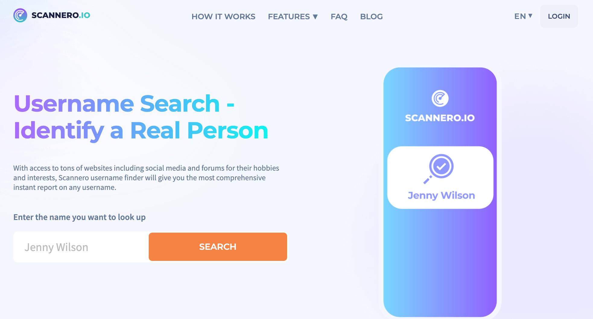 - Go to the Scannero reverse username lookup page.